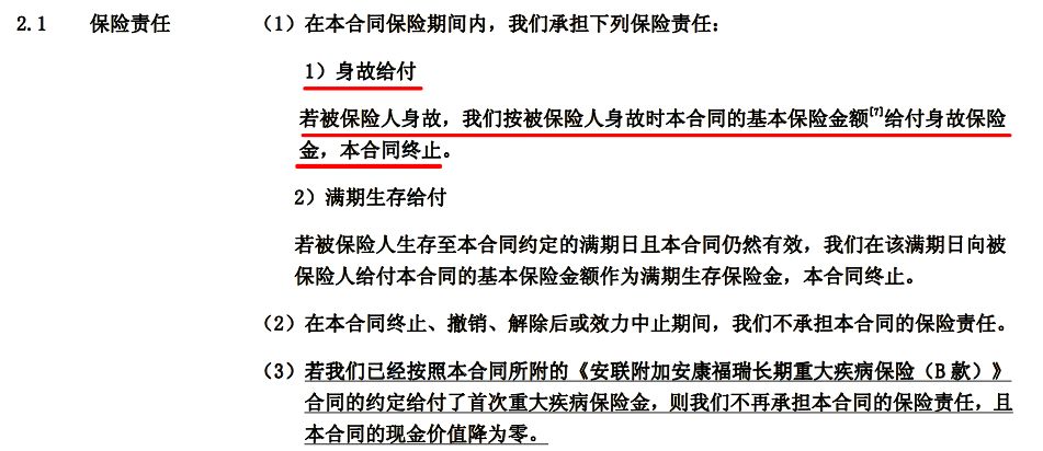 下面是这款产品身故的免责条款: