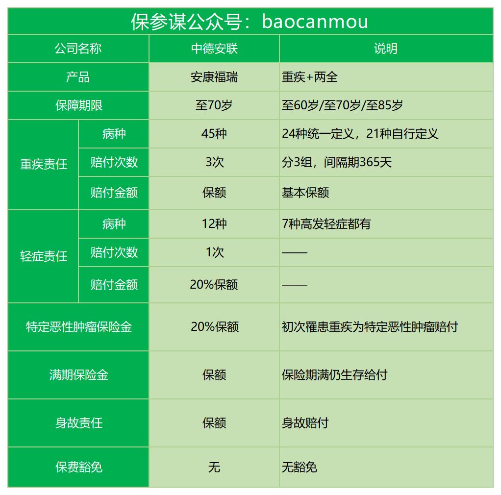今天测试的产品为:中德安联安康福瑞重疾险(2013款)。在2019年年底的时候,拿一款6年前的产品说事,大概率是要被别人骂sb的。