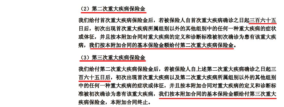 2-两组不同的重疾,赔付间隔期为365天。