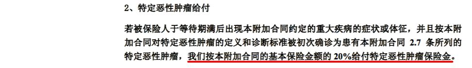 特定恶性肿瘤额外赔:20%基本保额