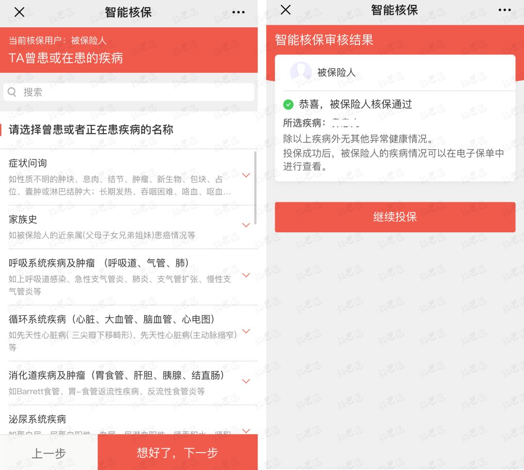 比人工核保方便多了,页面上点点点,不超过1分钟,能不能买,结果很明了。
