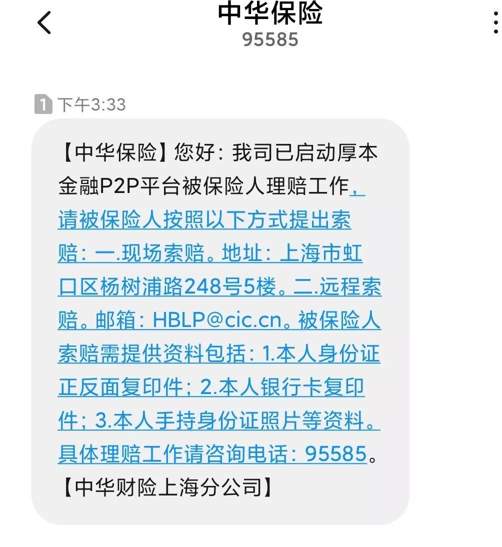 在网贷平台厚本金融投资了保险公司承保产品的出借人,可以尽早向保险公司提交资料申请相关的理赔了。