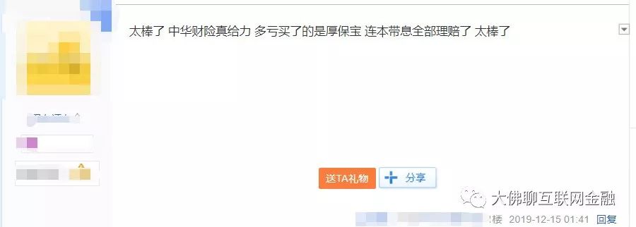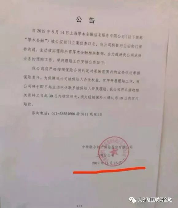 在厚本金融保险标有待收的投资人,最好尽快去联系索赔,时间久了后怕政策出现变故,一但发现有下车的机会时,就要第一时间把机会抓住,以后其它平台有最新下车通道的消息时,我们也会在公众号第一时间推送,希望能有更多的投资人安全下车。其它平台有好的下车通道的,读者也可以多留言分享,一个人贡献一点有用的信息,就是对我们这一群人最大的贡献。