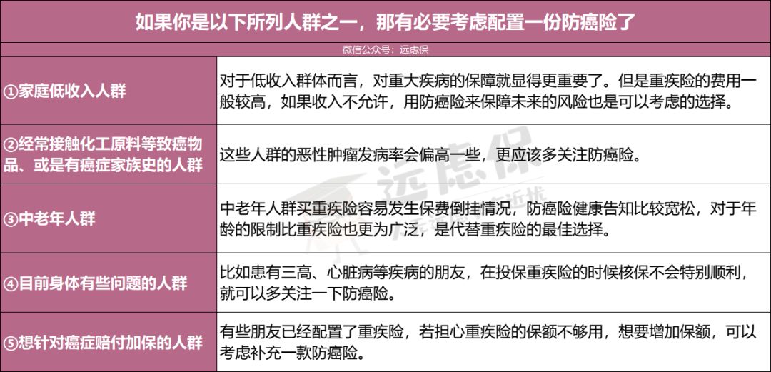 因此,如果你是以下人群之一,那么防癌险就是一个比较务实的选择。