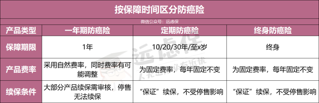 按照保障时间来分类,防癌险可以分为保一年、定期和保终身。
