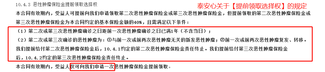 不同之处在于,泰安心有一个提前领取选择权,可以把间隔期缩短为一年。只要同时满足: