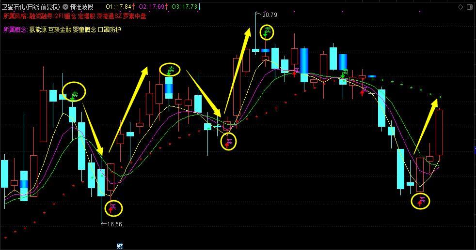 今天给大家分享的指标名为“精准波段”主图指标,可以说这个指标是短线做波段必不可少的指标,指标成功率非常高,不管是大波段还是小波段,基本上都能抓到。指标没有未来函数,大家可以放心使用,具体我们先看如下实战案例: