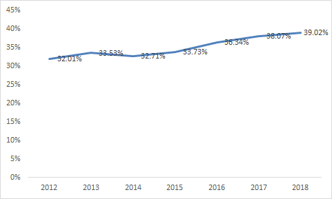 为什么这个行业以后是龙头胜出,我们先看一下我国药店整体的连锁化率,我国连锁药店从2011年的14万家增长至2018年的24万家,连锁化率从35%上升至53%。