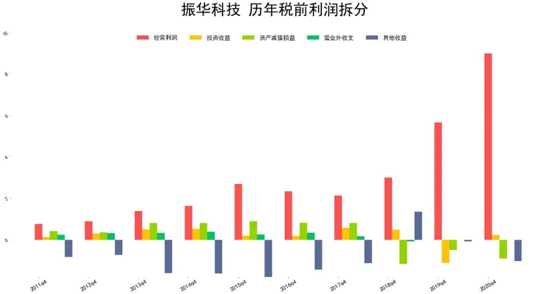 公司税前利润分布,主营业务利润占比在80%以上,有部分投资收益。