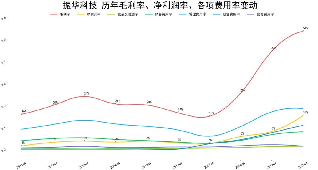 公司毛利率、净利润率整体上处于增长趋势,近三年毛利率净利润率明显提高,毛利率和净利润率都创了十年新高。