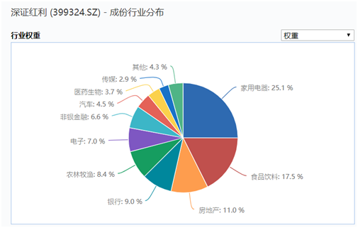 市值加权的傍身让深证红利占尽了“大蓝筹”的便宜,而真正让它坐上“直升机”的则是“大消费”。其他三只红利指数在周期股里困兽犹斗,深证红利则在大市值的加持下渐渐地成了“大消费”的忠实拥趸,也就理所当然地在消费“风口”上飞了起来。截至12月11日,深证红利指数前两大行业分别为家用电器和食品饮料,而这两个行业分别位列申万一级指数年内涨幅榜第二和第三,一个涨67.67%、另一个涨48.43%。