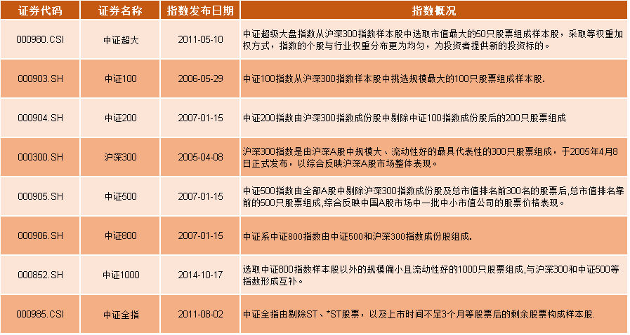 中证100指数:从沪深300指数样本股中挑选规模最大的前100只股票组成样本股;