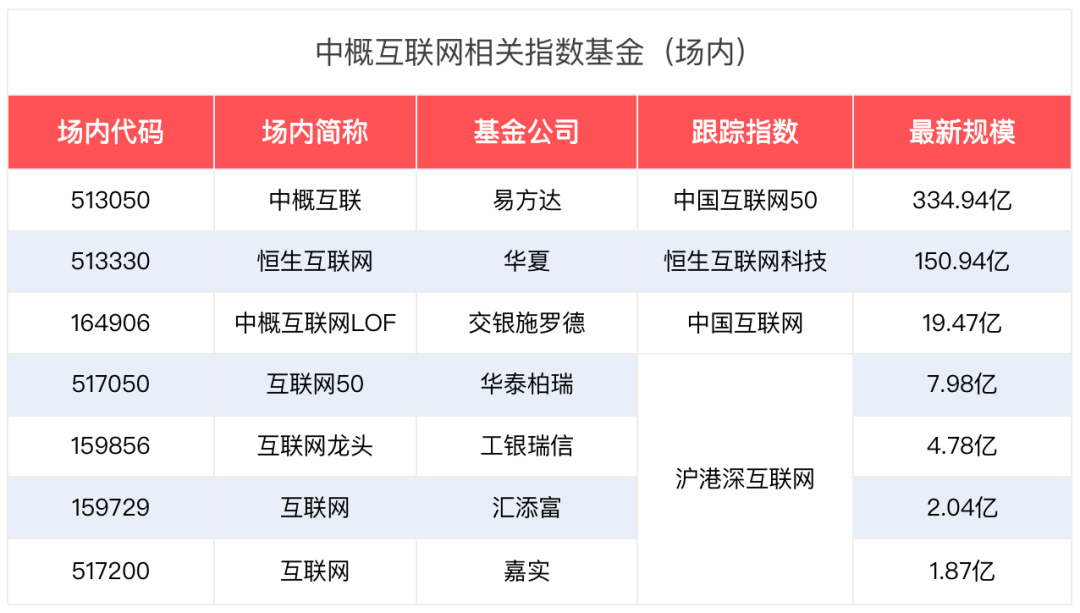根据上面的4个指数,豆妹整理了与中概互联网相关的场内、场外基金。