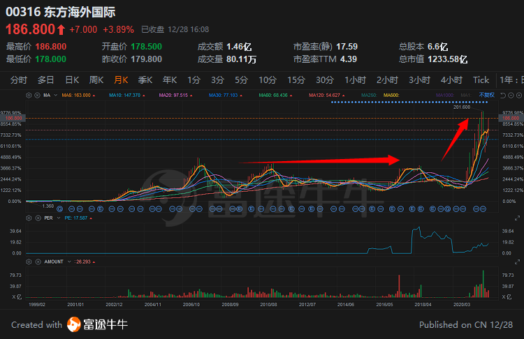 航运更厉害,横有多长,竖有多高,东方海外国际在横盘了近10年后,股价一年涨了10倍。