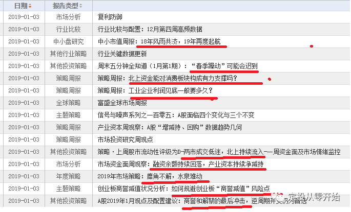 2019年1月4日上证指数大涨,开始了年初的反弹行情。我截了上涨前1天,1月3日的机构的研究报告,要找个偏乐观点的标题都难。