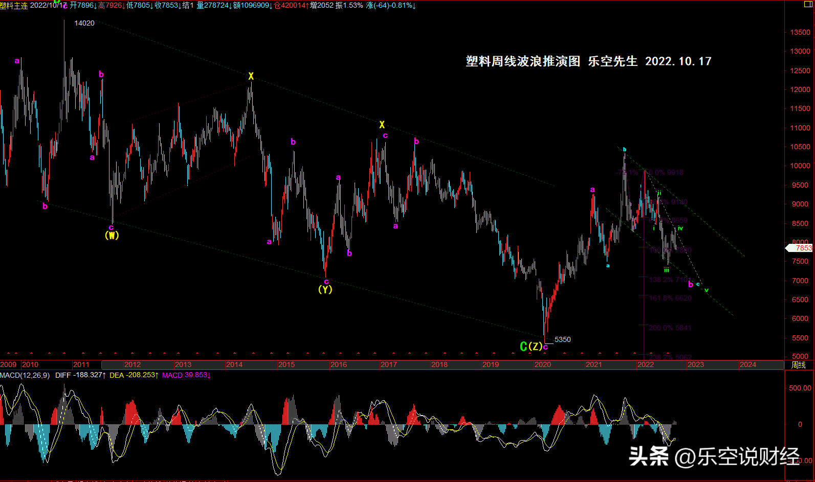 技术面去看的话,塑料期货始于2008年的下跌周期并未结束,长期的情况并不乐观;中期来看,可能需要消费端逐步向好才能出现积极的信号;短期局势根据波浪理论的规则来预判的话,行情处在新一轮5波下跌潮之中,近期需要堤防价格第二次寻底的动作。
