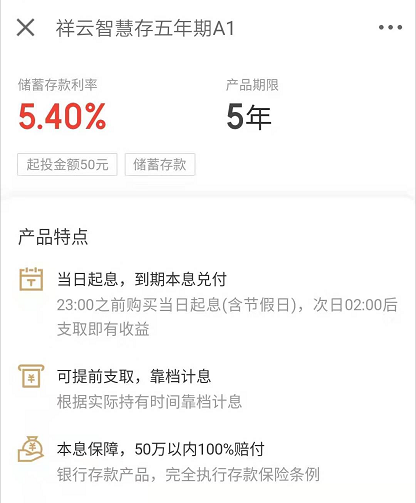 基本上已经很明确了,安全性是50万以内本息保障,灵活性可以提前支取,收益率长期看是5.4%绝对高于国有大行的存款产品了。