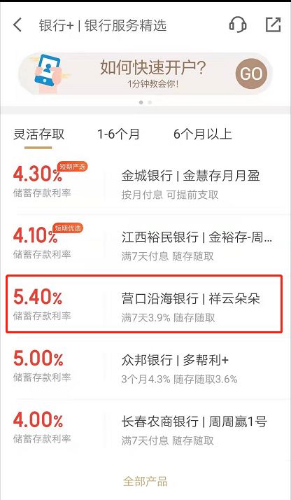 进去以后在下面的灵活存取栏目里就可以找到这个【营口沿海银行|祥云朵朵】的产品了。