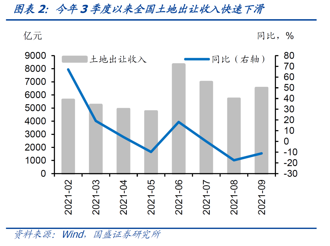 三季度土地出让收入明显下滑,2021年全年土地出让收入预计将下降3.2%,而目前看,明年土地出让收入压力更大。2020年二季度之后随着疫情得到稳步控制,以及逆周期调节下相对宽松的流动性,房企拿地意愿明显提升,2020年全国土地出让收入达到8.4万亿,同比增长15.9%,但随着宽松政策的逐步退出和对房地产政策的逐步收紧,2021年前9个月全国累计实现土地出让收入5.4万亿元,与去年同期增长8.7%。分月度来看,年中以来土地出让收入增速转负,同比增速下滑至-10%以下,8月甚至接近20%。如果假定未来几个月土地出让收入同比增速在-20%,那么全年土地出让收入将同比下降3.2%。而如果延续当前趋势,明年土地出让市场将面临更大压力。