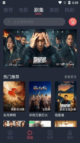 5、功能菜单明显简洁,操作简单方便,让用户能够轻松找到新剧和热门推荐。