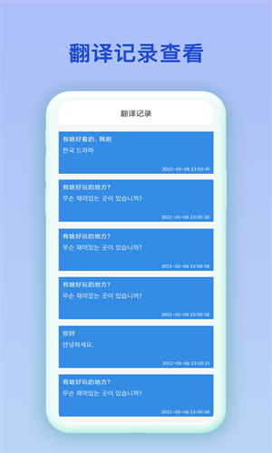 中韩互译翻译功能强大易于使用高效便捷,其特点在于可靠高效多元化记录方式丰富实用功能,优势在于高效便捷,数据安全保障多种实用功能和完美翻译质量。语音实时识别翻译出国旅行助手,输入文本即可翻译非常实用。