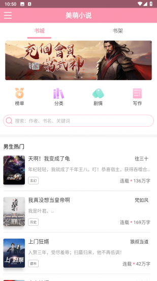 6、强大搜索:通过书名、作者等快速查找小说,也可按人气榜、新书榜等榜单查找热门作品.
