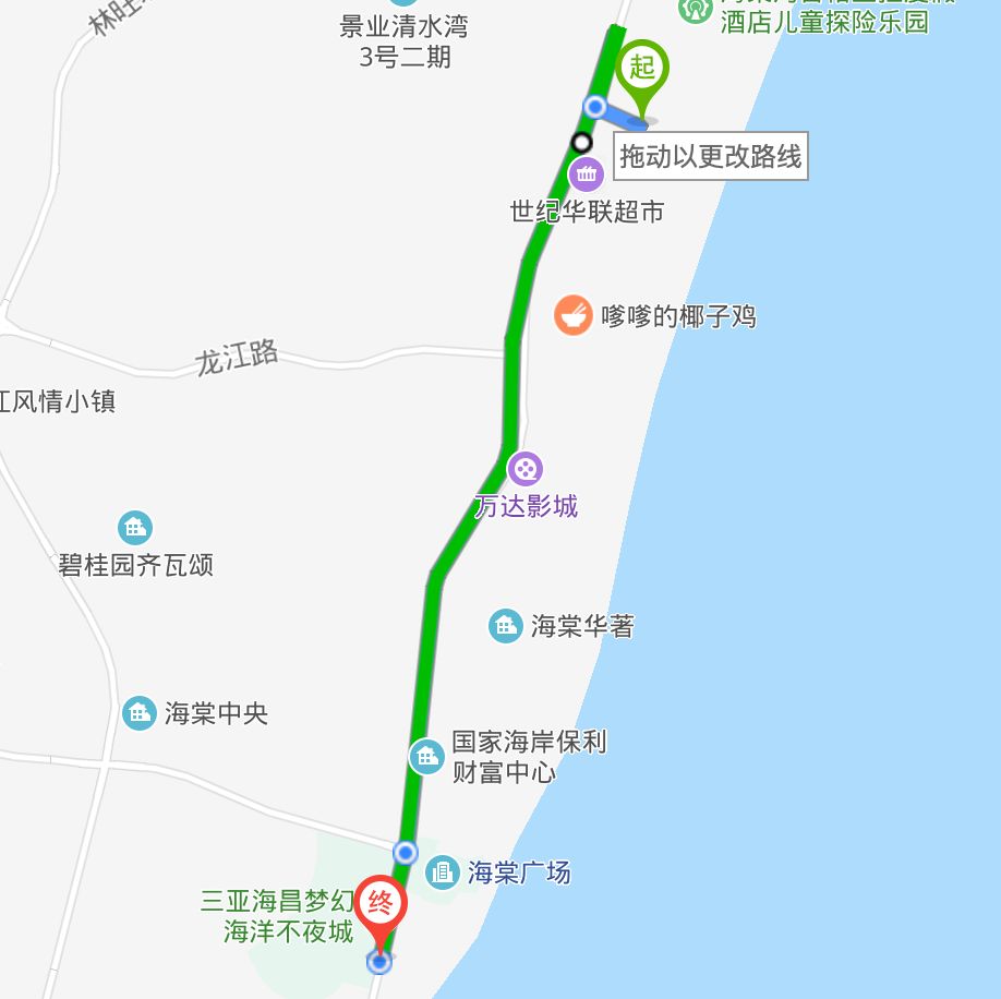 前台提示海昌离酒店有点距离,建议叫车。我还想沿路逛逛久未宠幸的海棠湾,咱这次又是一个人