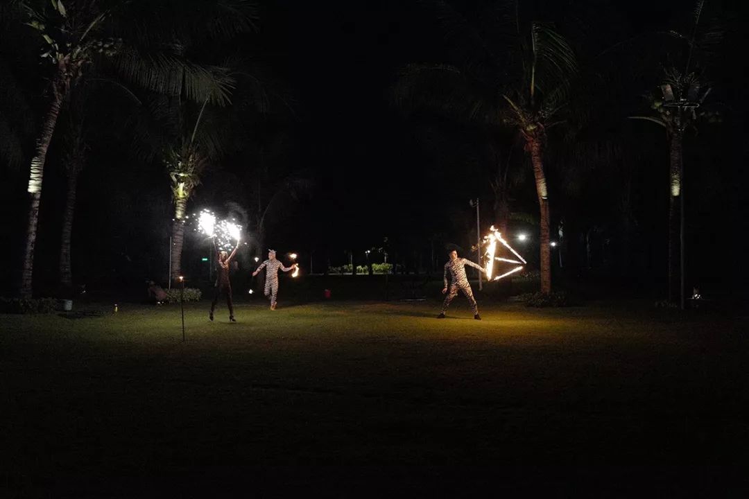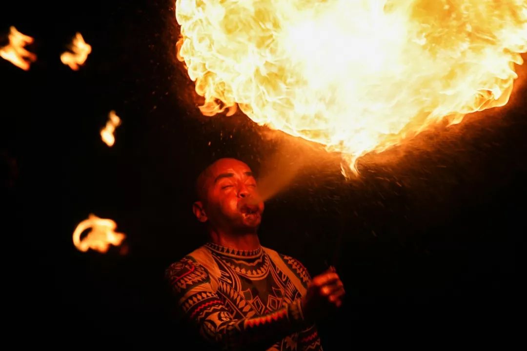 高潮部分:大草坪上的火焰表演,不必用餐也可以免费观赏。