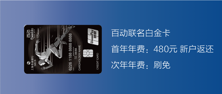 2020年1月1日至6月30日,对于未持有本行个人信用卡的新客户,活动期间,对于成功办理百动联名白金卡主卡并完成任意金额消费的活动对象,可享受首年480元年费返还。年费返还名额限前3000名,先到先得,用完为止。